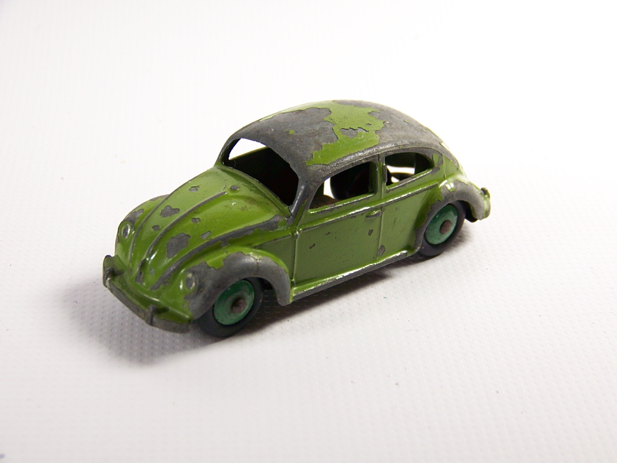 This silver painted VW was an early Dinky. I tried to remove the silver paint only using mild chemical stripper but it softened the original green paint. Later Dinky models had a hard baked paint that ould have resisted the stripper. So nice try but this now goes for a complete strip and repaint.