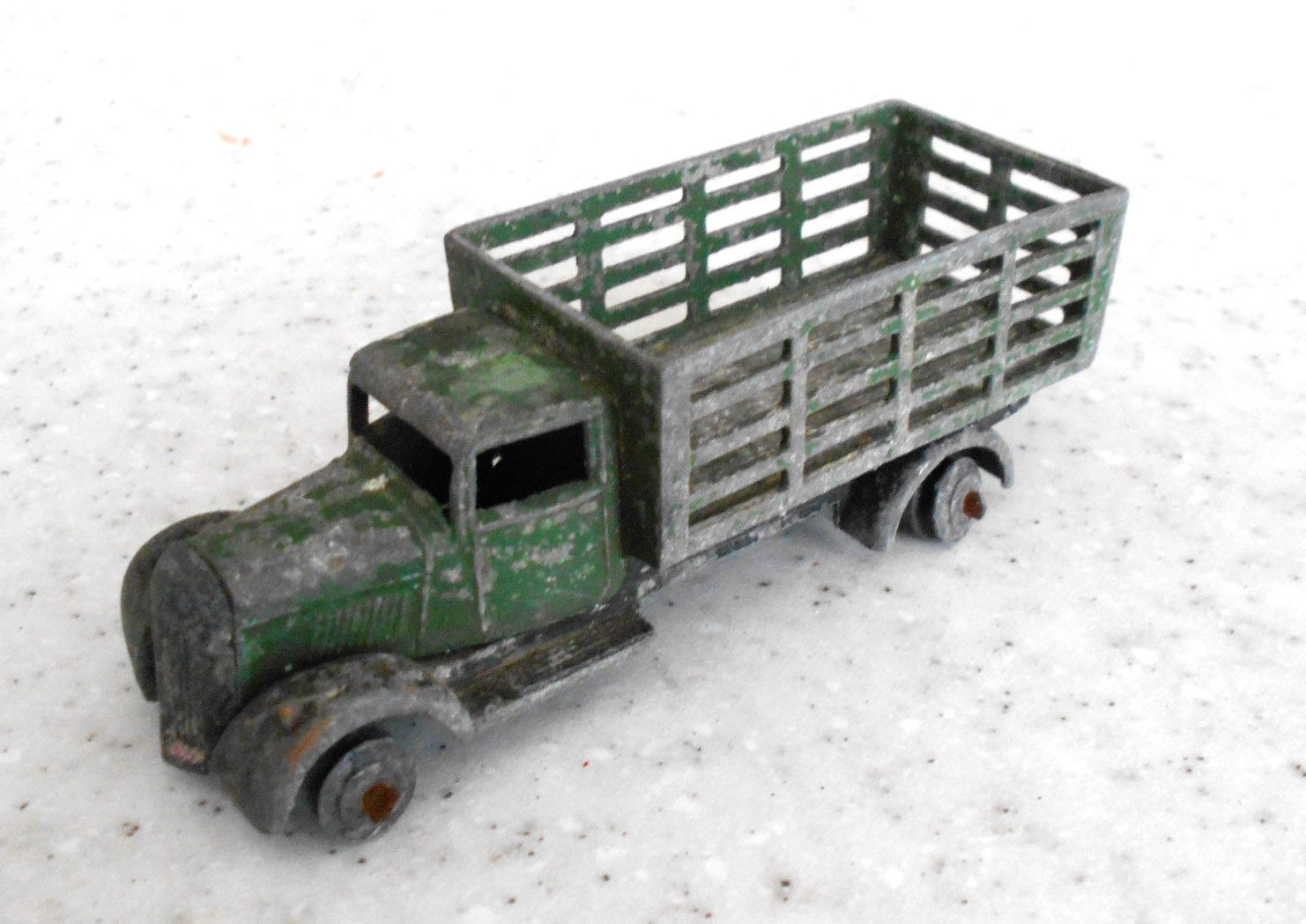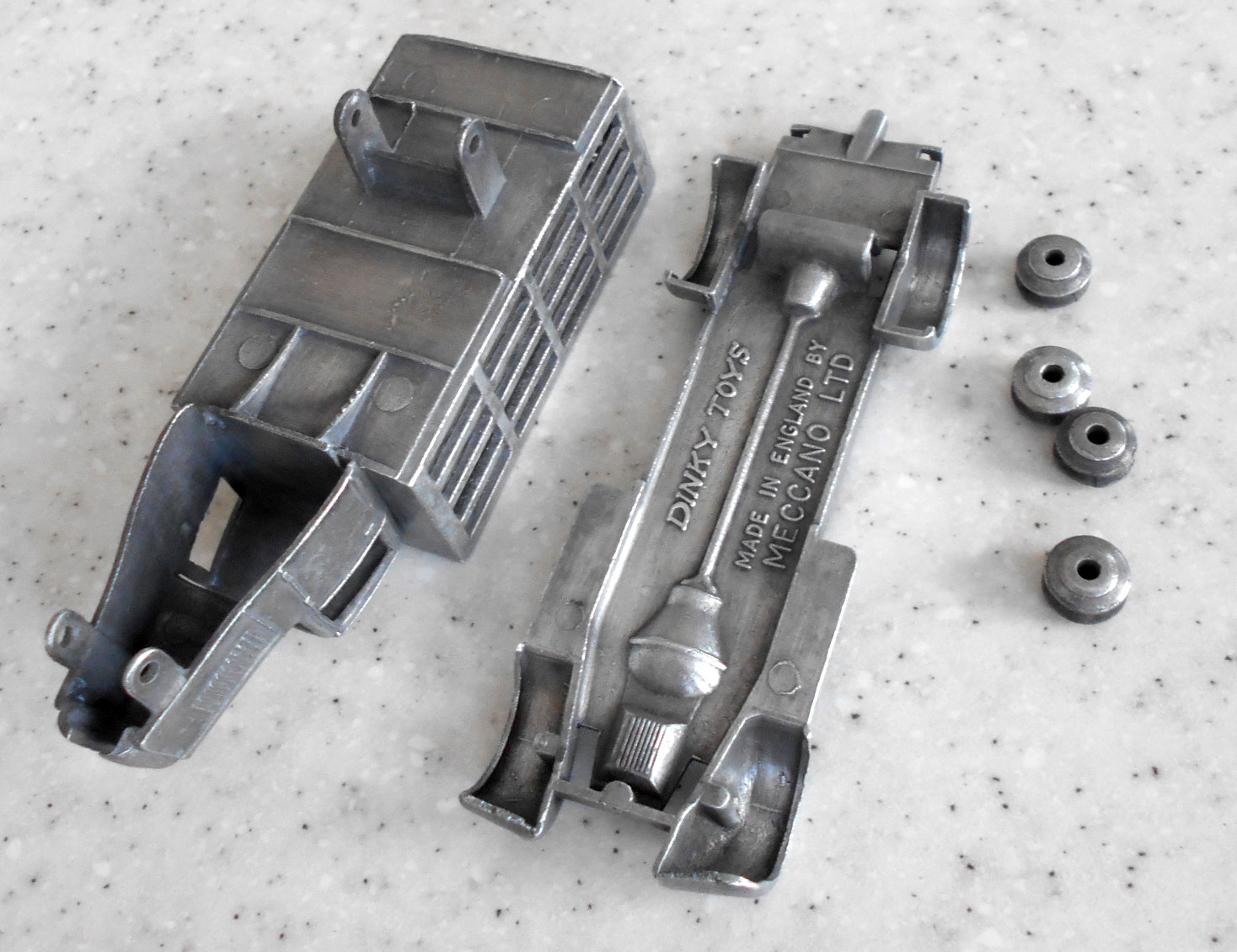 Badly corroded but solid model, with bends to the wagon sides and fenders and axles and the usual broken headlamps. Full strip down and repair, new axles and front grille and the model looks like new.