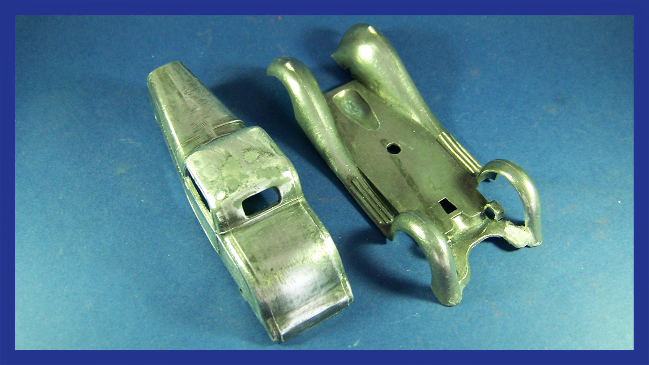 Paint stripped corroded areas filled and smoothed.
