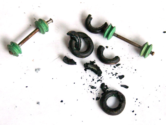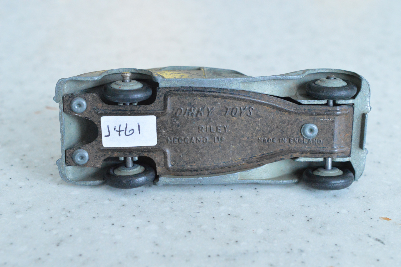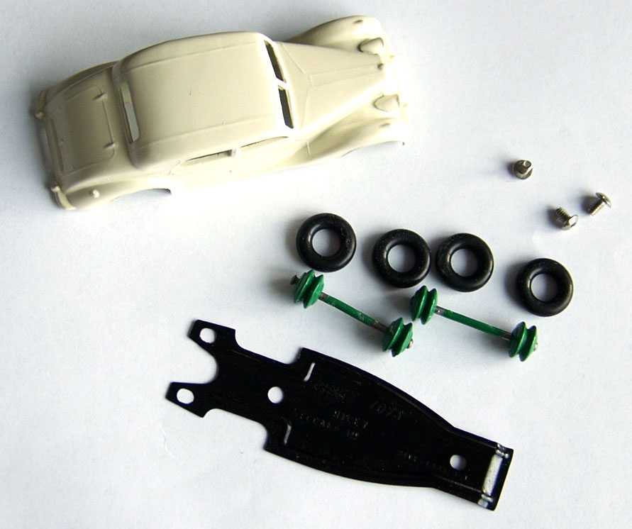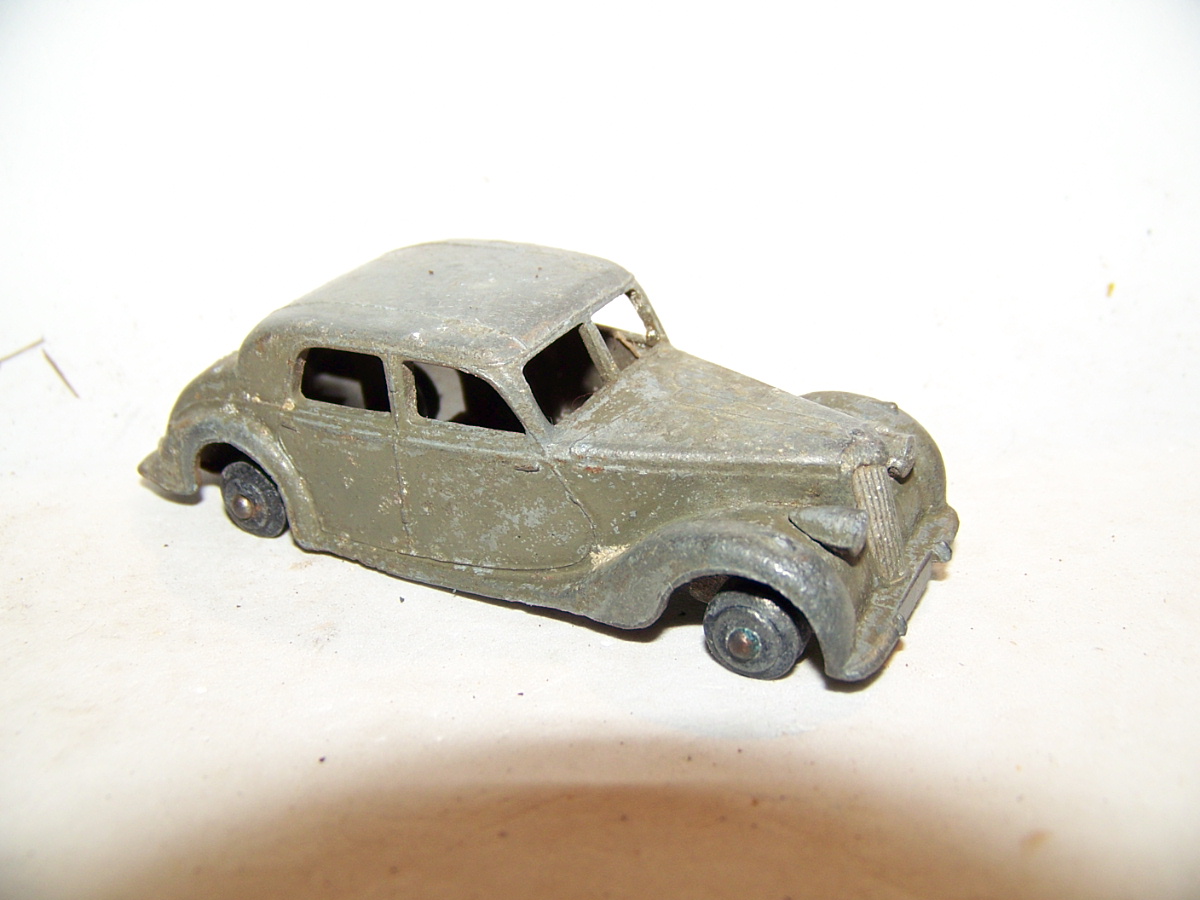 i guess this one was dipped in old paint, what a mess, but otherwise an intact model. Following the same routine of stripping repairing and re-spraying I decided to finish this in burgundy. I already have one in the standard cream finish and if it ever were necessary to revert back to the original color it would be easy to do so. I think the new color to be quite a good choice for this particular model. Made by Dinky 1947-1960 this one 1950-1952.