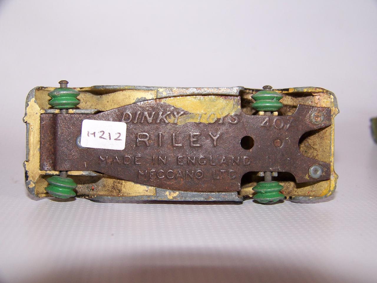 Poorly overpainted and with hardened tires this one was ripe for restoration. Strip down was quite straightforward with 3 rivets to drill out. The axles and wheels were independent and so this saves having to break the axle. The chassis was very clean on the inside with just a slight blemish on the bottom. The original color was cream with green hubs and the chassis had small lettering and no number which probably makes this an early model. The old paint was removed and the whole body shell given a fine wire brush and wire wool finish before a coat of white primer was added. This followed by some fine filler for minor scratches and three top coats on the body, three for the wheels and two for the chassis. Pre drilled holes, made during the strip down, were tapped for screws and the model was reassembled, one minor bend in one axle was straightened. New tires and trim paint added to complete the restoration