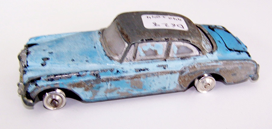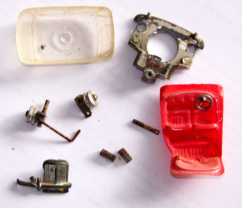 Sad looking with no steering no spare tire, tires missing, lost headlamp, no rear lamps, broken front bumper but sound and worth restoring. After strip down and paint removal there was more damage found to the seats and rust to the boot spring and suspension. One front axle and king pin was corroded and locked in place so a soak in penetrating oil and some gentle persuasion freed them. The hub has also some damage and may be replaced as I have also to source on for the missing spare in the boot. All quite repairable but attention will have to be given to the chromed bumpers and grille as I do not have a way of re-chroming, and stripping the chipped chrome may be a problem