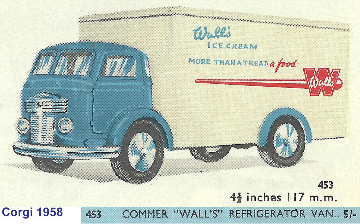 H477 : Corgi Commer 1 Ton Refridgerator Van Walls 453