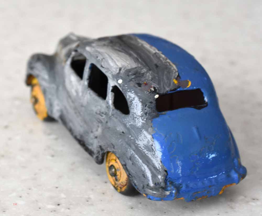 Over-painted but solid with one bent axle. Simple strip down and paint but the rear riveting pillars are a bit thin so drill carefully. This is a 40d as there is no DEVON printed under the roof and the printing on the base is small. Restored to near original colors.