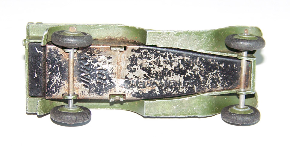 Fair paint for on this car but a missing axle, broken axle posts and a damaged chassis marked this one out for restoration. I may leave the body paint untouched, but repairs to the axle posts may take a little figuring out.