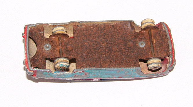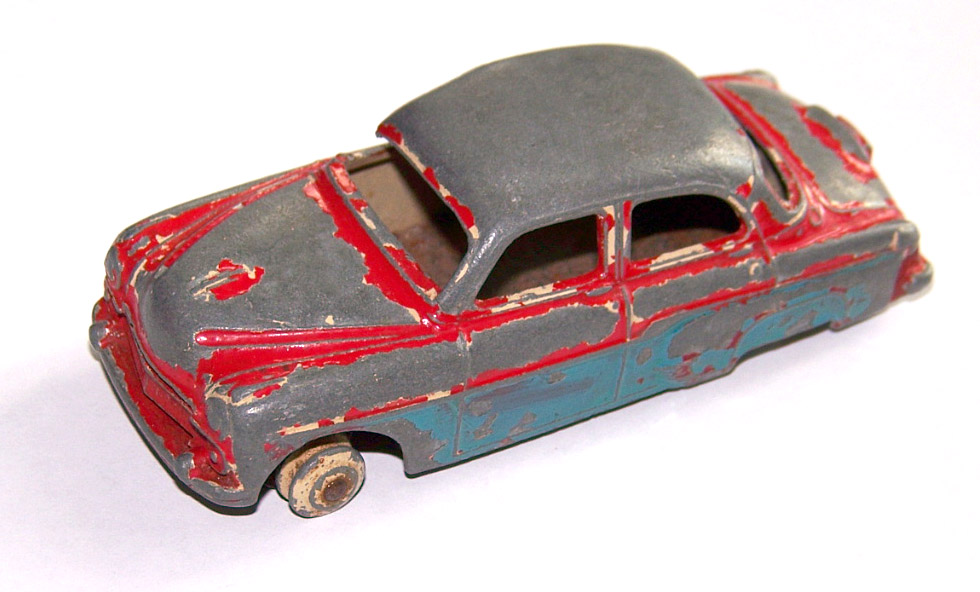 In very poor condition, overpainted and huge paint loss, rusty chassis, windscreen pillar missing, bent roof.