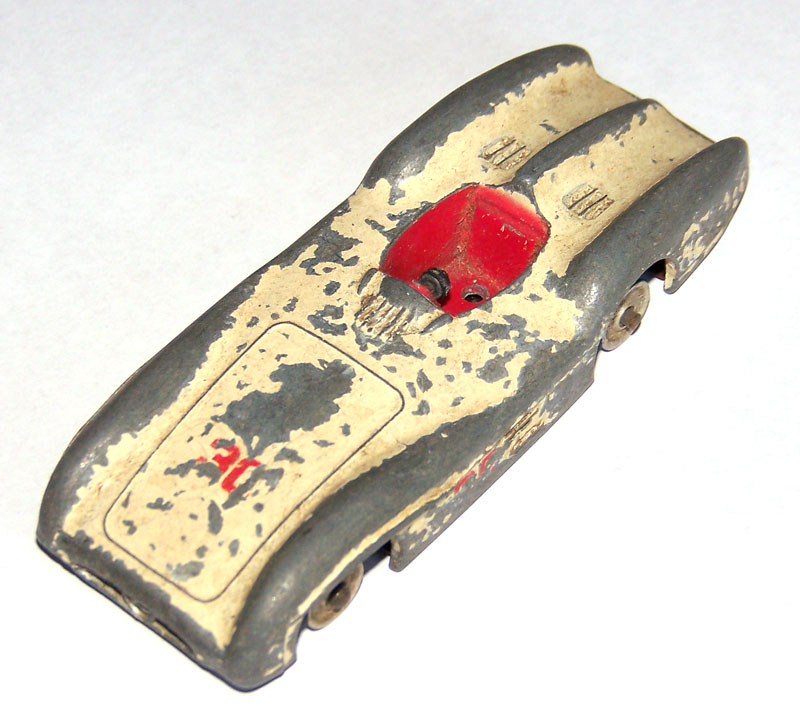Well play worn, no driver, steering wheel or tires, and ripe for restoration. Bearing the number 30 rather than 36, I have the chance to put any number on this model.