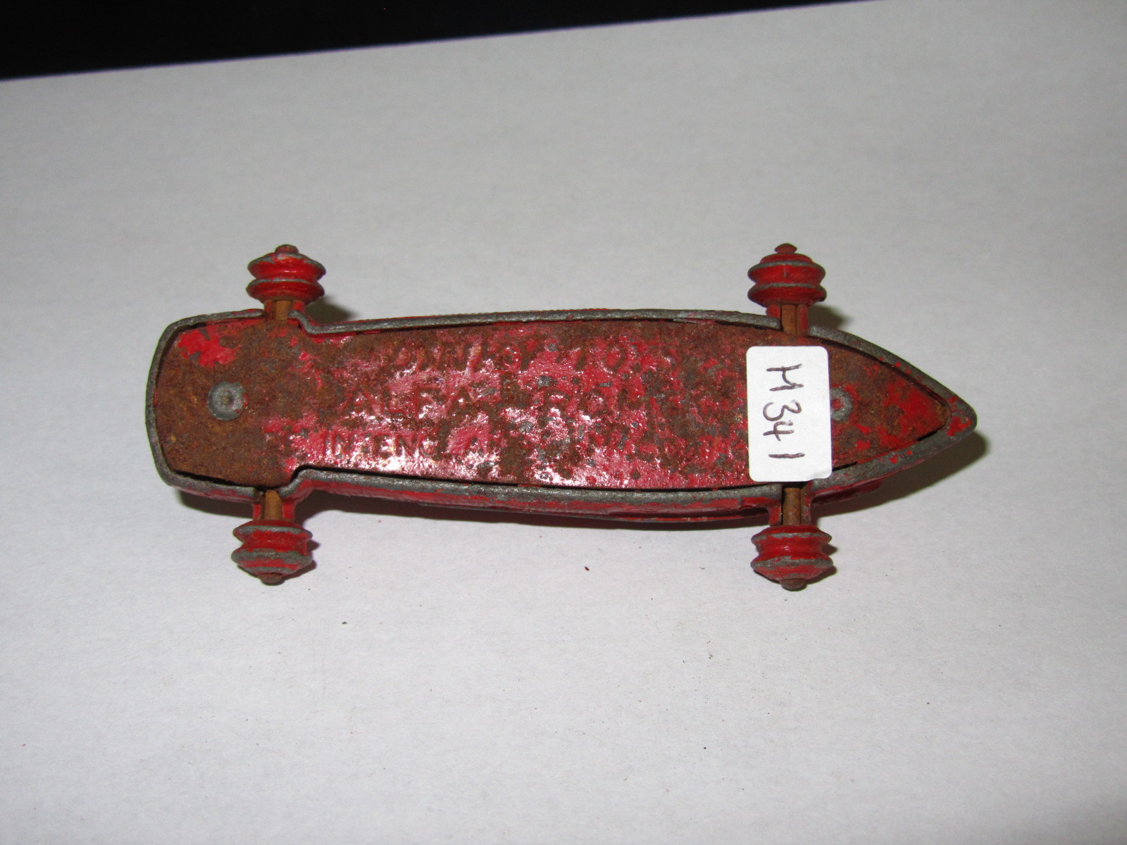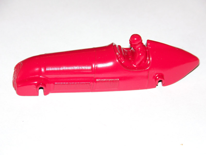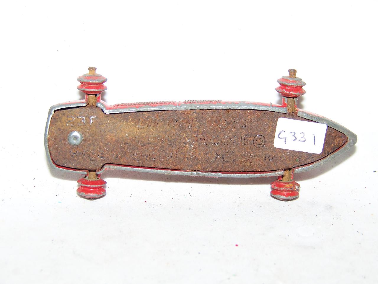 No tires on this one, but the paint was original and well playworn. This is the next in the series of restorations and begun before the first was complete. Not always a good plan, but I have to source some more paint colors for the first one. Alway keep the parts of each car separate and safe. I use a ziplock bag, they are cheap enough. So, since I started this one, I have finished quite a few and it was about time to complete this. I used an all in one primer/top coat, but I have to say that this was not a good idea. Primer does give much better coverage, it covers edges where as top coat tried to pull back from them. The sticking ability of primer gets around this problem. Never the less, I persisted with several coats until I was satisfied with the result. Finished with some silver on the grille and exhaust, white and brown for the cockpit and the driver and a touch of black on the goggles for authenticity.