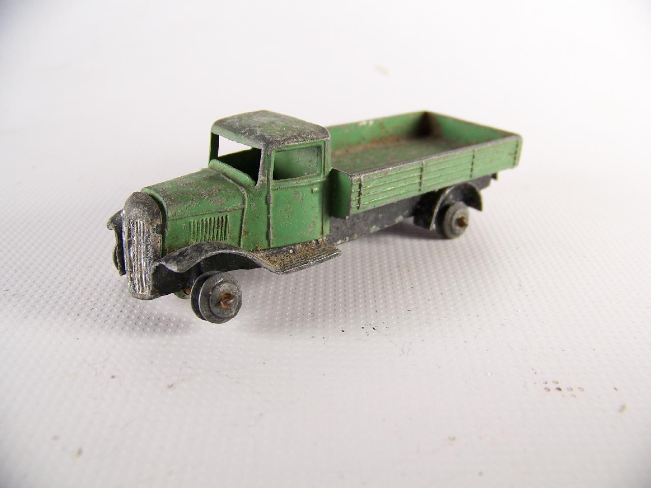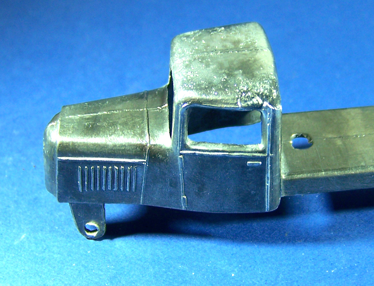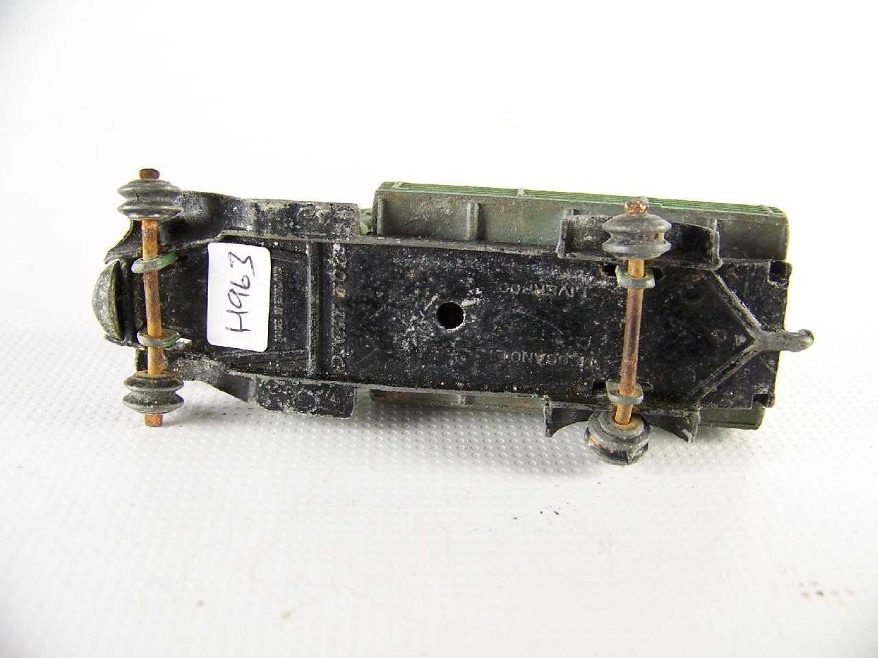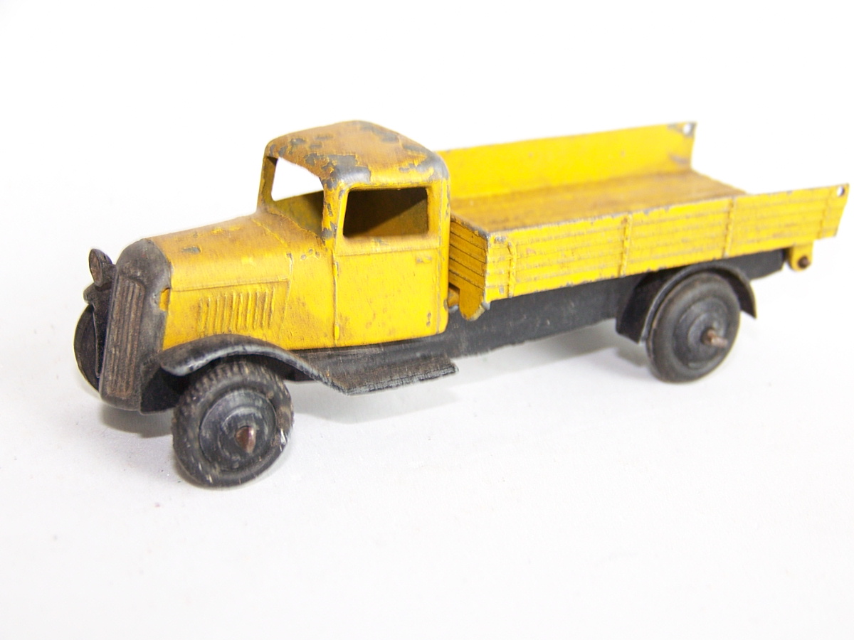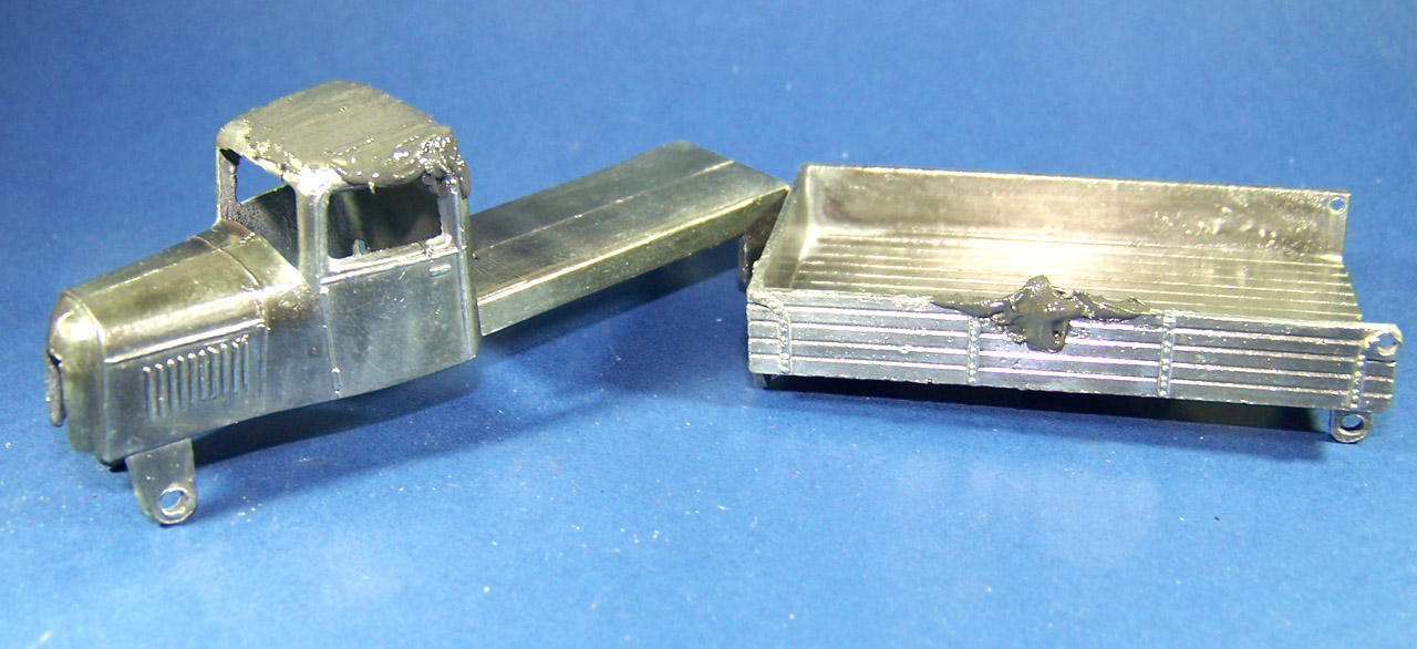 Corroded but complete with hand made rear flap. Wheels corroded onto the axles. Ripe for restoration.