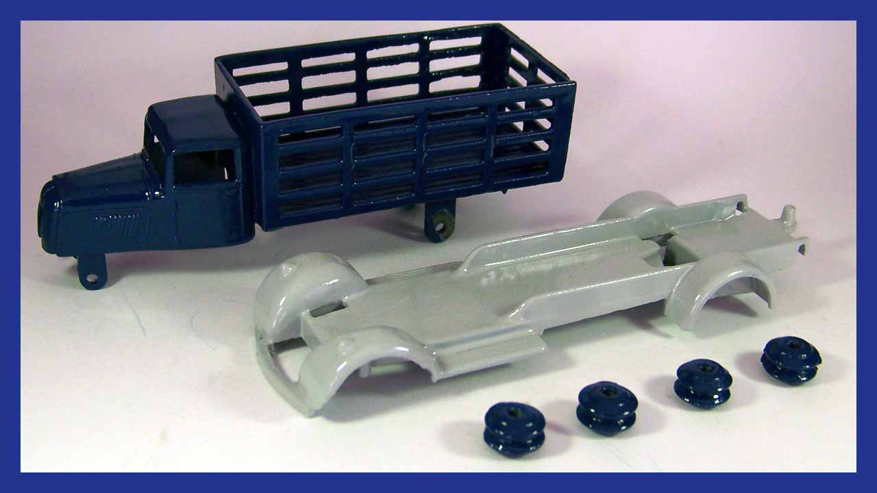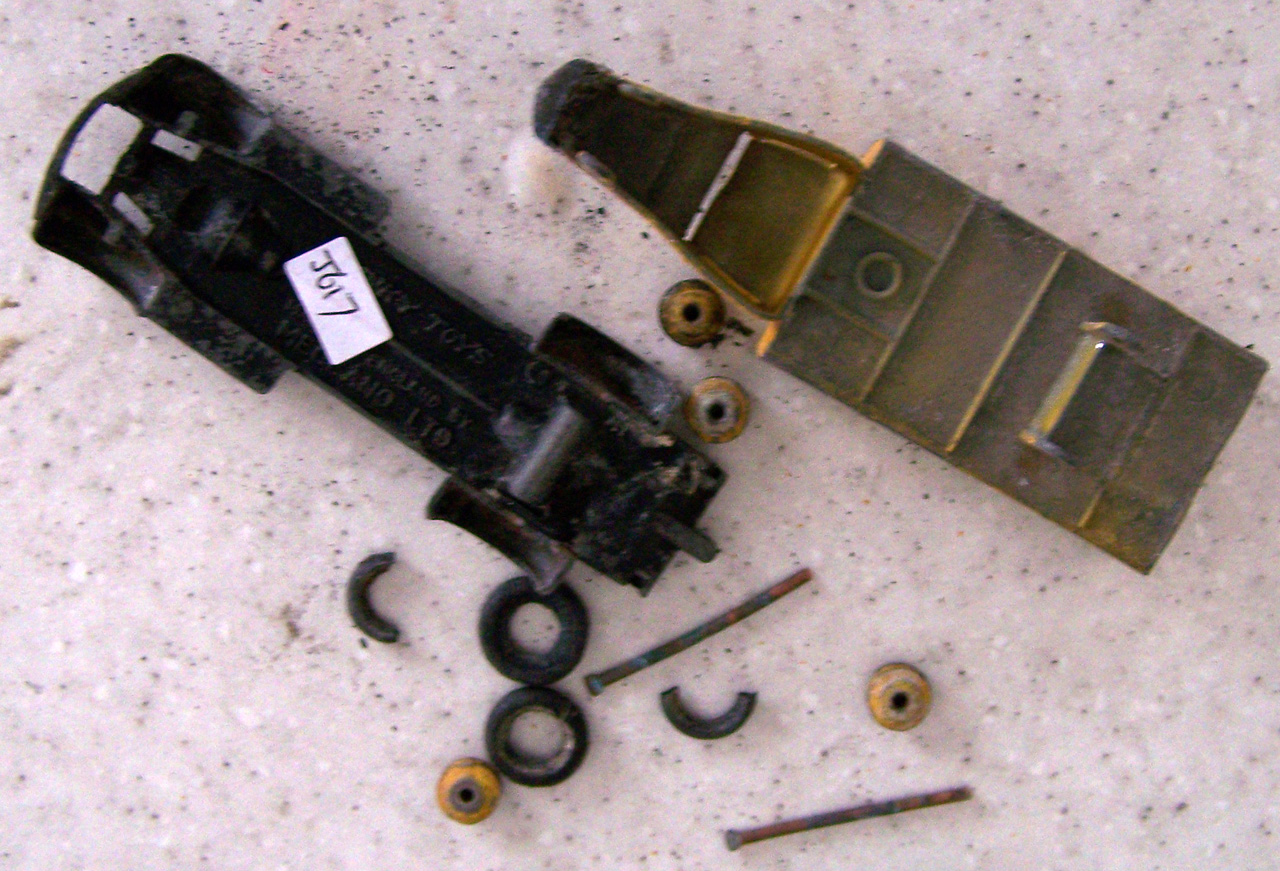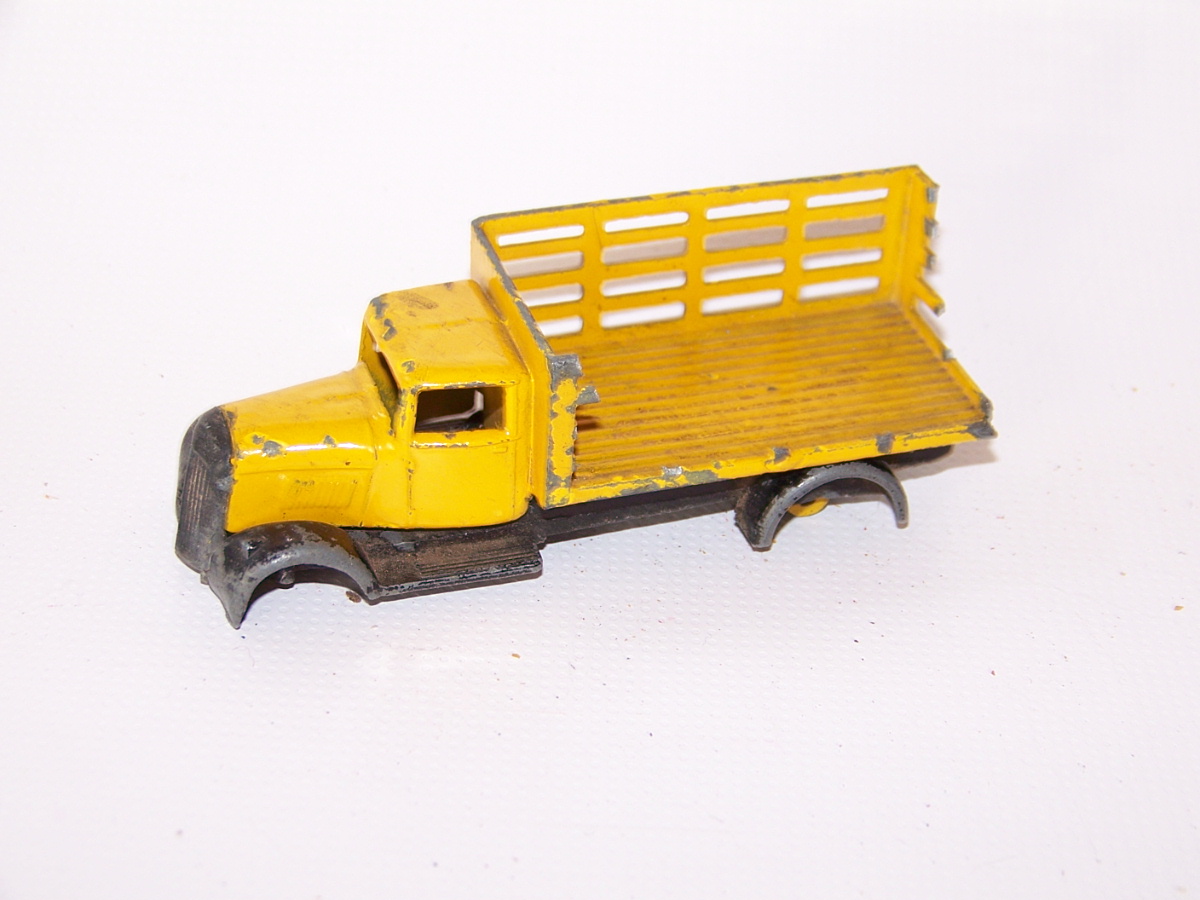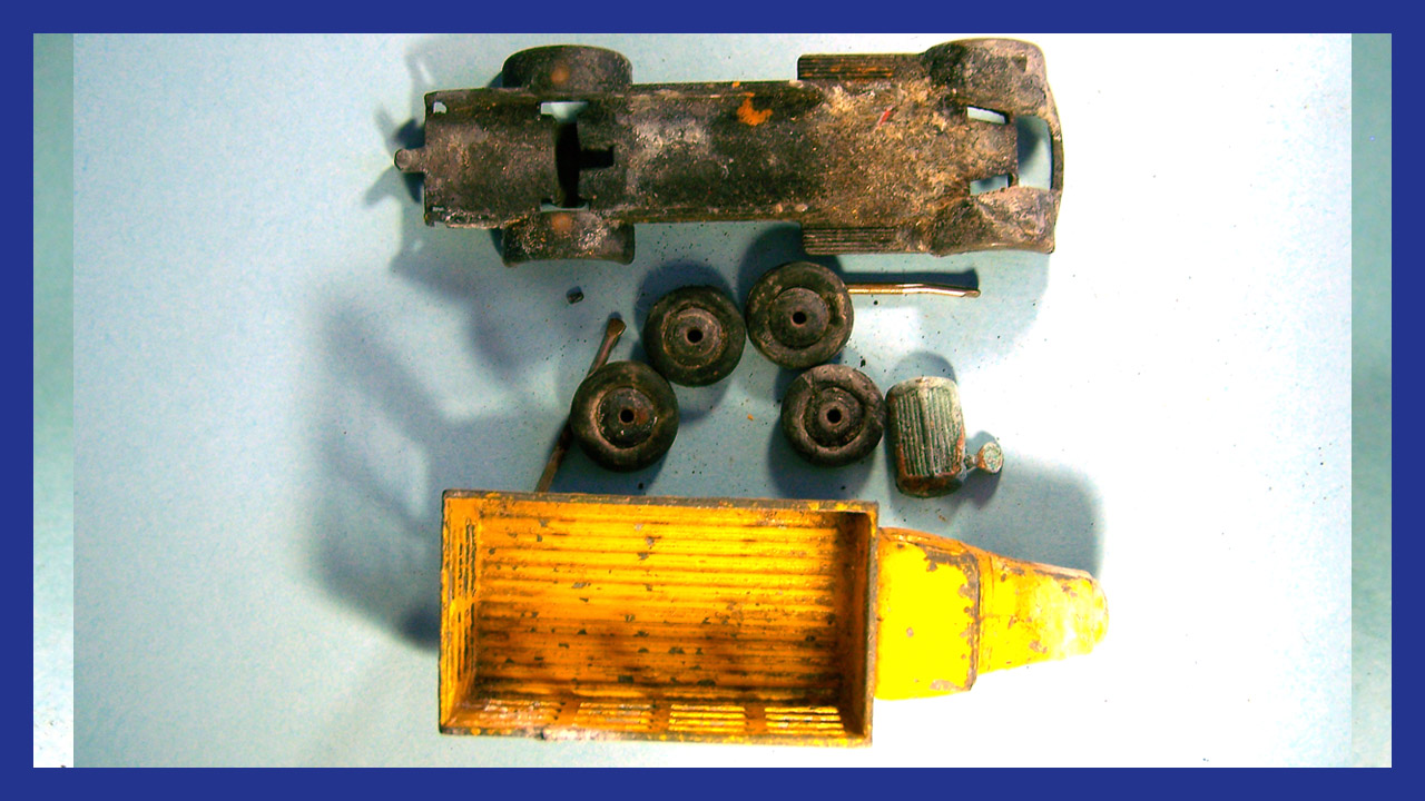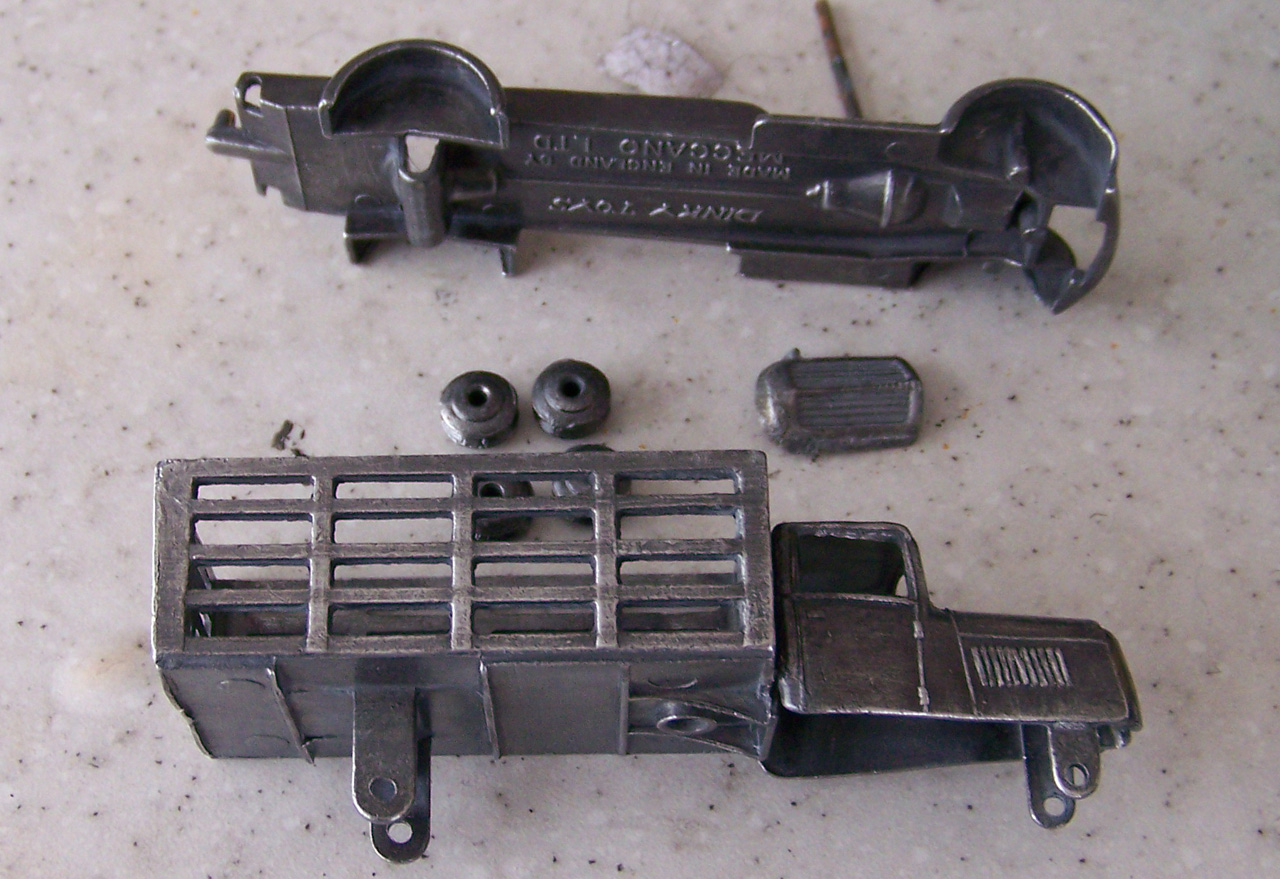 Badly corroded but solid model, with bends to the wagon sides and fenders and axles and the usual broken headlamps. Full strip down and repair, new axles and front grille and the model looks like new.