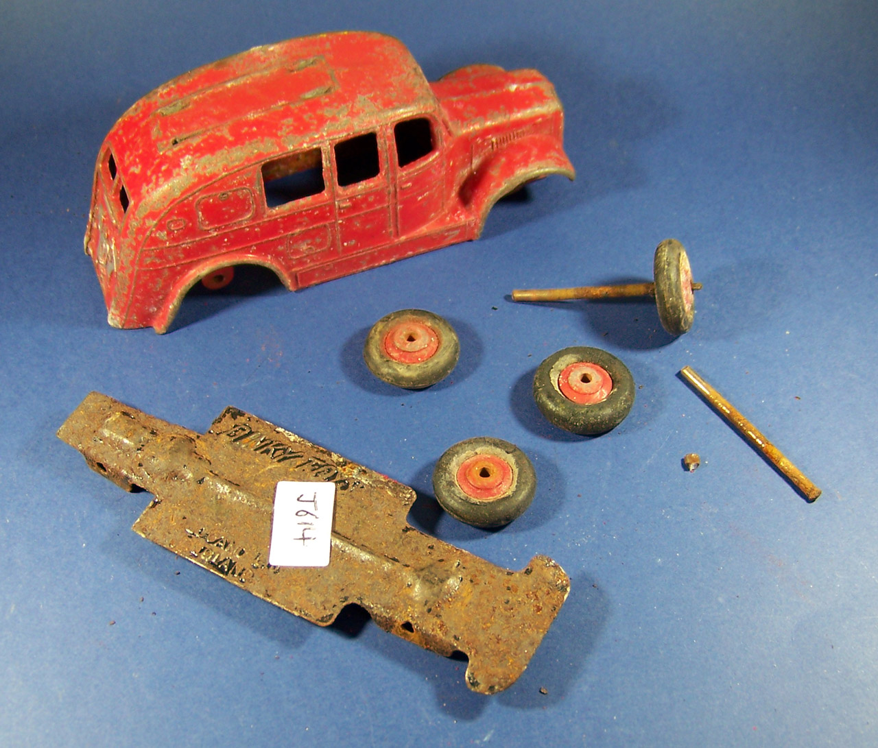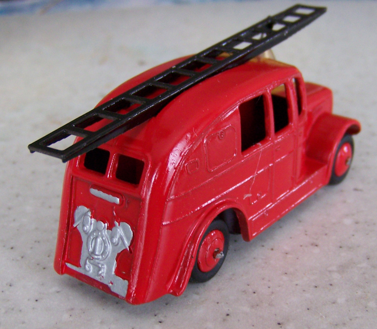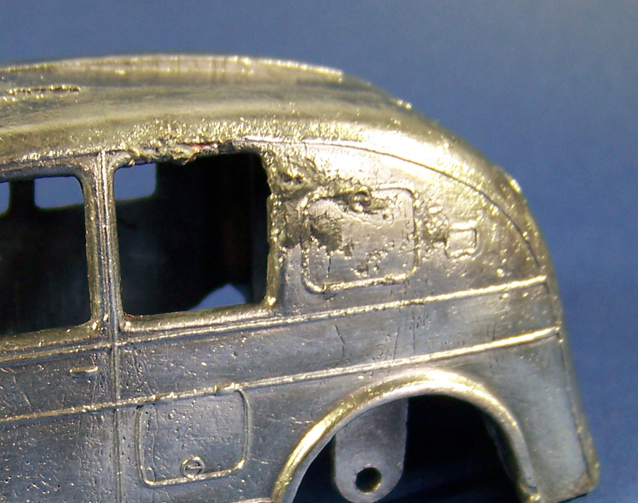 Time for a makeover on this fire engine. Fairly common so a change will not hurt. The strip down was quite straightforward but some corrosion was found as shown. A little metal epoxy fixed that.