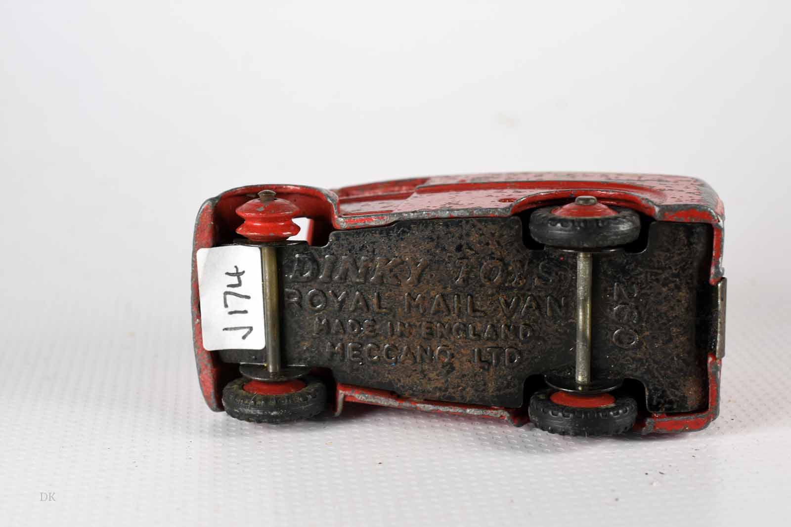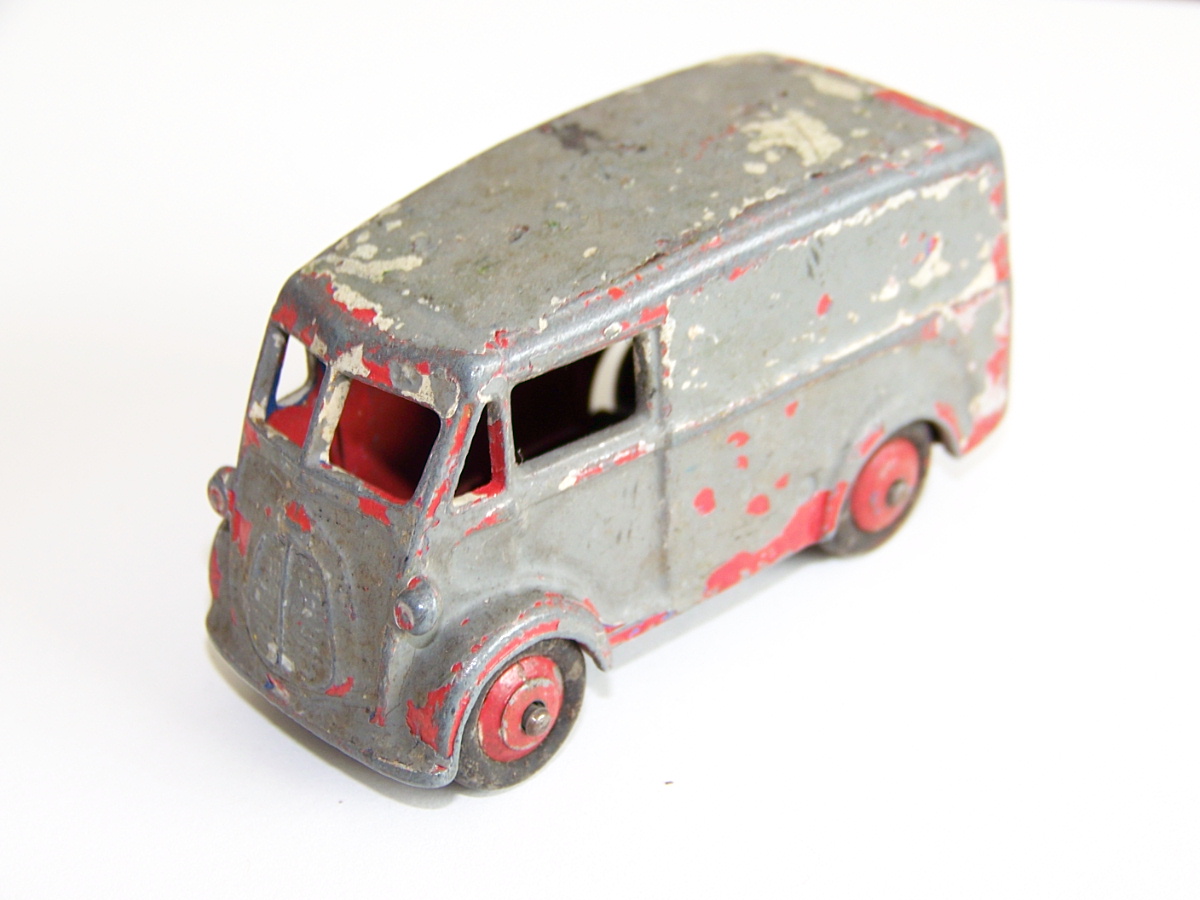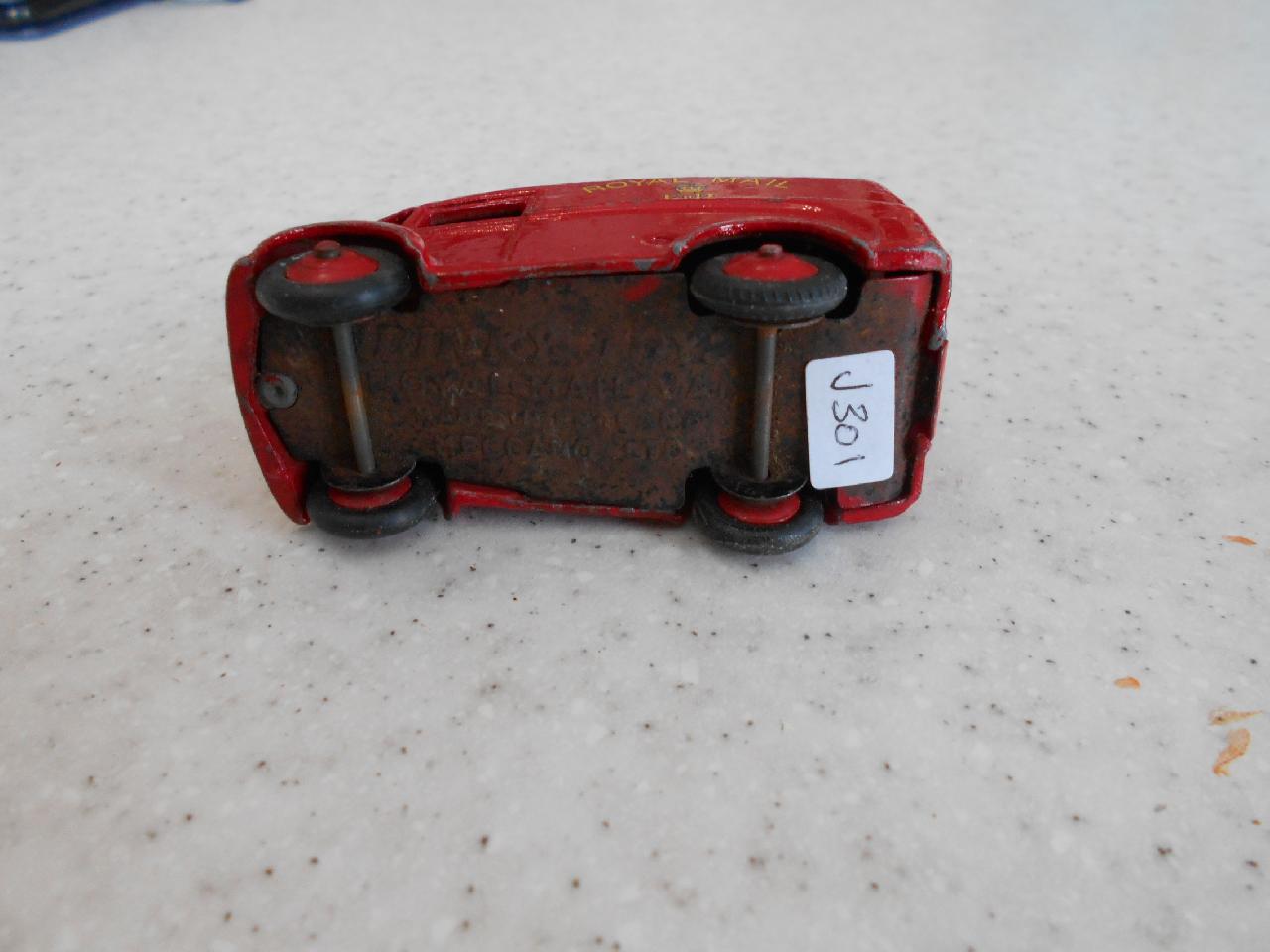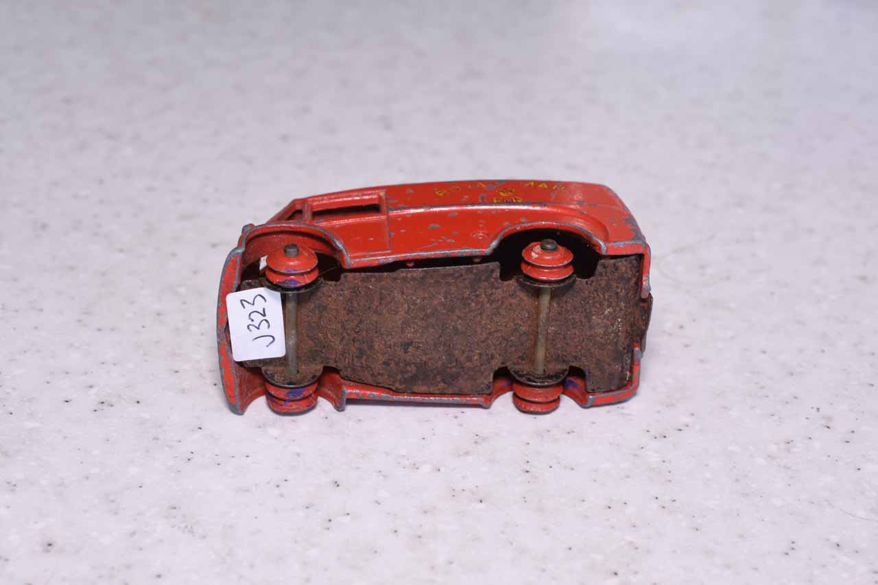 Sometimes you have to decide if the model requires a repair or complete renovation. If the model is not rare but the paintwork is three quarters good, maybe it should just be cleaned. This one had not bad paint, fair decals, but a rusty chassis. So I decided to repair just the chassis. Removal is the regular procedure and the bonus is that there is just one rivet. The chassis was rusty and twisted. An overnight soak in vinegar and a brush with comet cleaned things up very well. Light use of a soft hammer and some twisting got the chassis in fair shape. I could have removed the axles but I wanted to keep the model as original as possible. Mask the wheels and two coats of gloss black finished this project. The body was given a good clean and made it quite presentable.